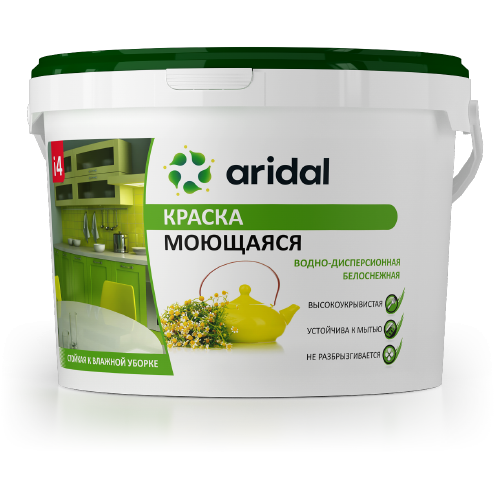 Водно-дисперсионная акриловая краска для интерьера моющаяся ARIDAL i4 для сухих и влажных помещений, белоснежная.